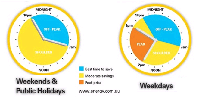 In PowerSmart Homes electricity is priced at three different rates, depending on the time it is consumed.  The rates are: OFF PEAK @ 10.56 cents/kWh, SHOULDER @ 18.04 cents/kWh, PEAK @ 44.66 cents/kWhThe times are indicated in the adjoining diagram. The monthly heating costs in the tables above are based on this method of pricing. The PowerSmart electricity pricing scheme may not be available where your home is located. Non-PowerSmart Domestic All Time rates are: first 1750 kWh per quarter 22.66 cents, remaining usage per quarter 32.01 cents. Off-Peak 9.02 cents/kWh.